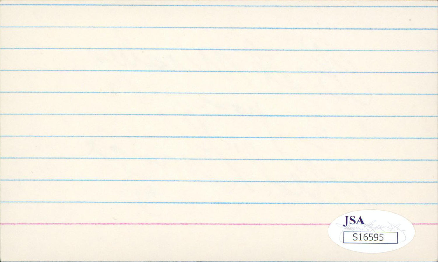 - 3x5 index card — ideal size for display or framing in any memorabilia collection