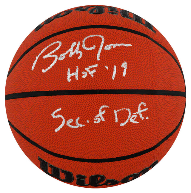 Bobby Jones Signed Wilson Indoor/Outdoor NBA Basketball w/HOF'19 & Sec of Def