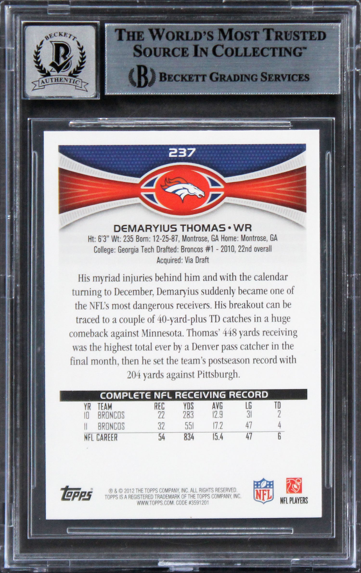 Broncos Demaryius Thomas Signed 2012 Topps #237A Card Auto 10! BAS Slabbed is backordered and will ship as soon as it is back in stock.