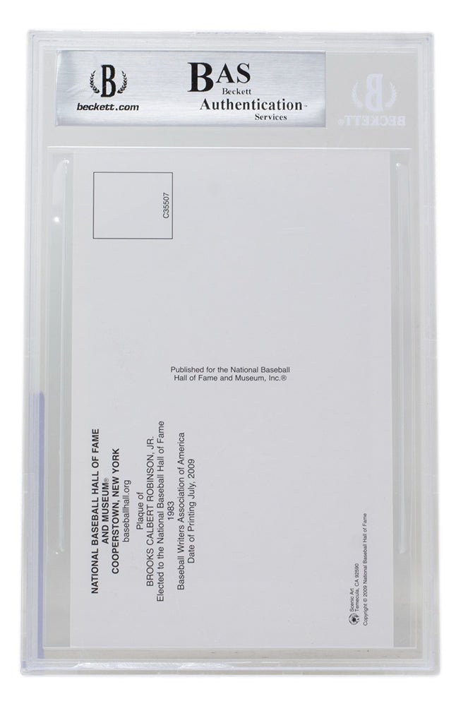 Brooks Robinson Signed Slabbed Orioles Hall of Fame Plaque Postcard BAS 090