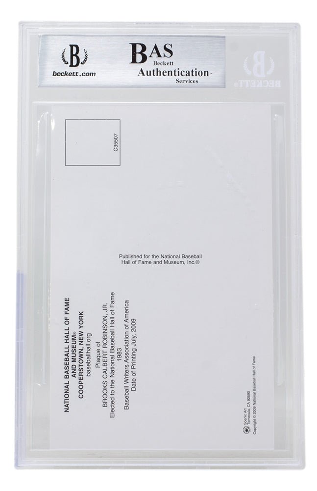 Brooks Robinson Signed Slabbed Orioles Hall of Fame Plaque Postcard BAS 115