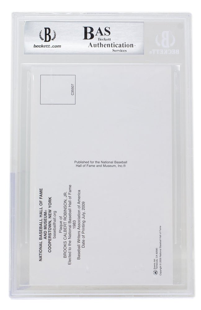 Brooks Robinson Signed Slabbed Orioles Hall of Fame Plaque Postcard BAS 117