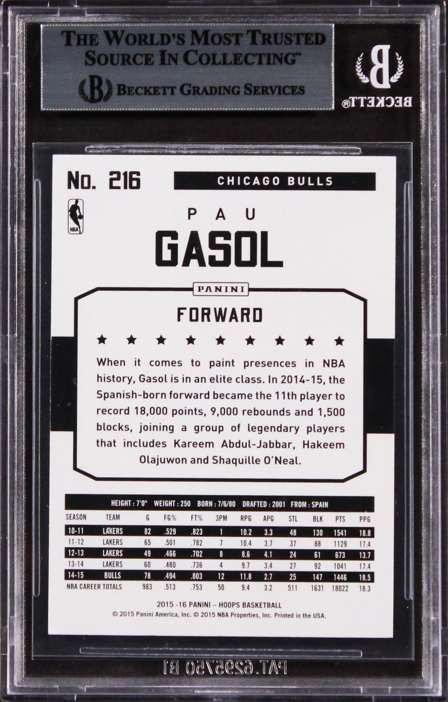 Bulls Pau Gasol Authentic Signed 2015 Hoops #216 Card Autographed BAS Slabbed