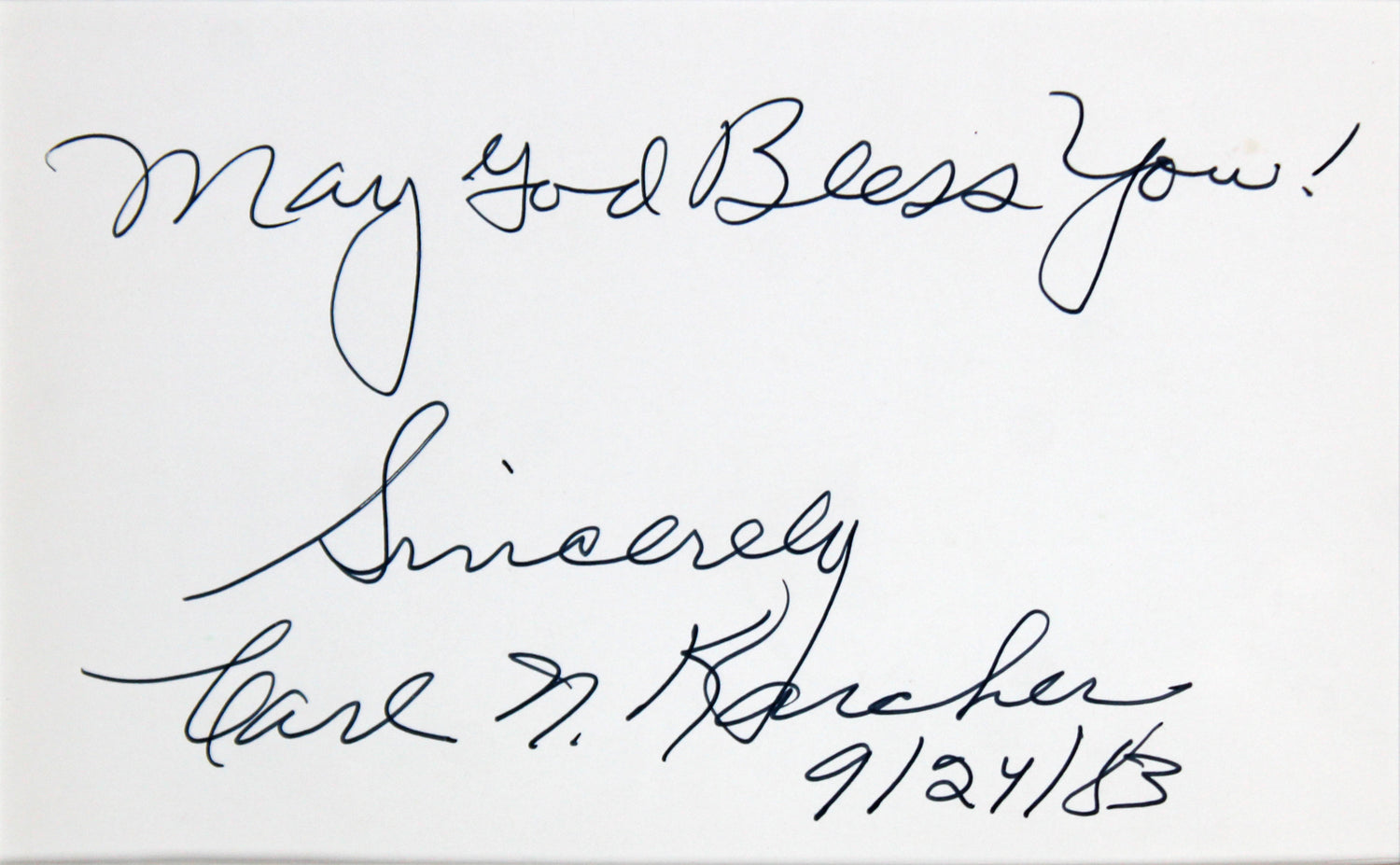 Whether you're a fan of Carl’s Jr., an autograph collector, or someone who appreciates the legacy of entrepreneurial icons, this autographed and framed Carl Karcher signature is a timeless tribute to a business pioneer.
