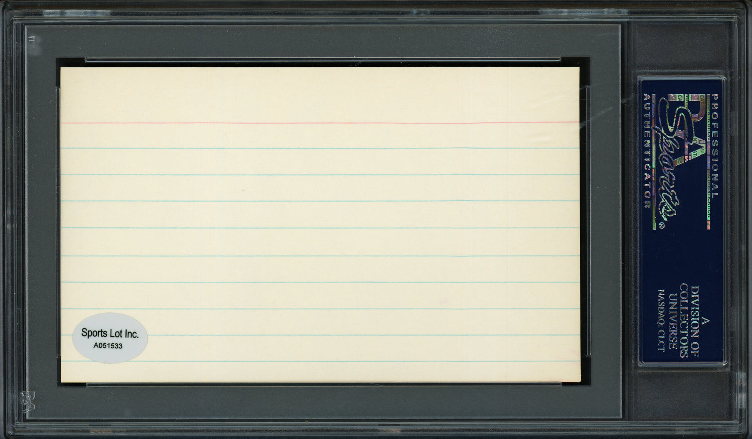- Dimensions: Standard 3x5-inch index card – perfect for framing or adding to a display case