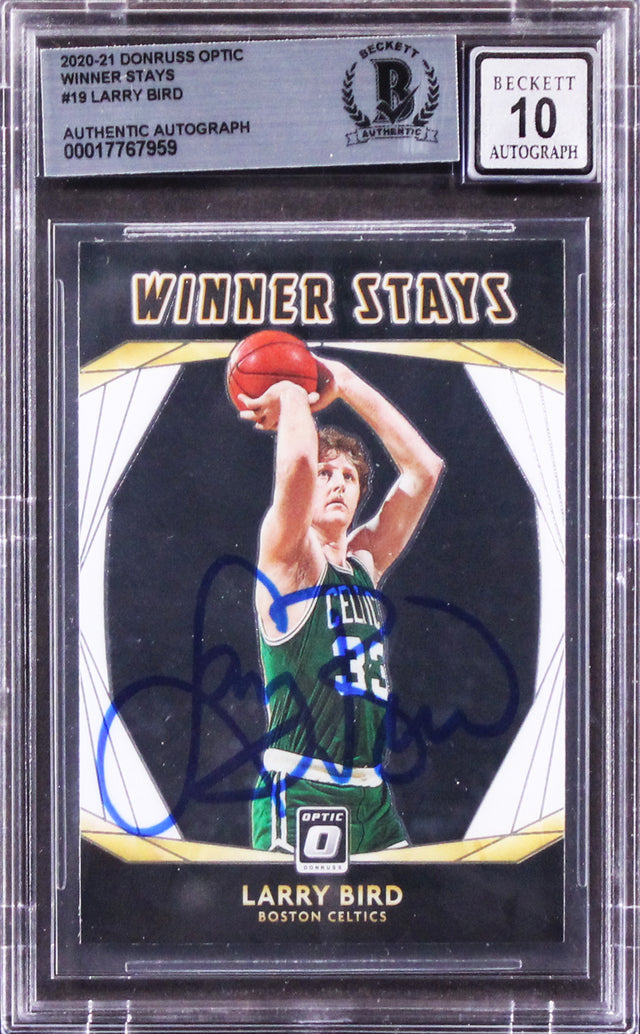 Celtics Larry Bird Signed 2020 Donruss Optic Winner Stays #19 Auto 10 BAS Slab