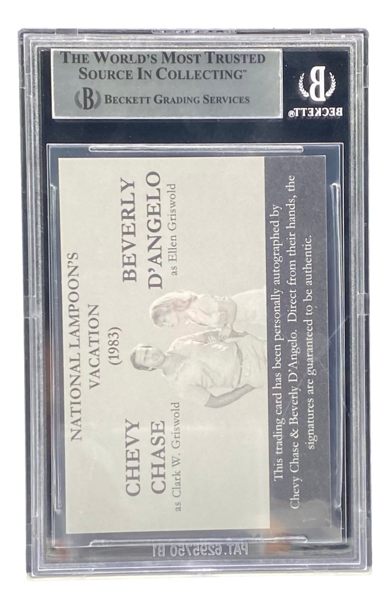 Own a piece of comedy history with this Chevy Chase & Beverly D'Angelo signed National Lampoon's trading card—a must-have for any pop culture memorabilia collector! This rare collectible has been professionally authenticated and slabbed by Beckett, ensuring its authenticity and long-term value.