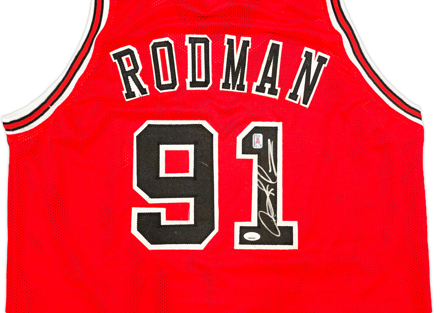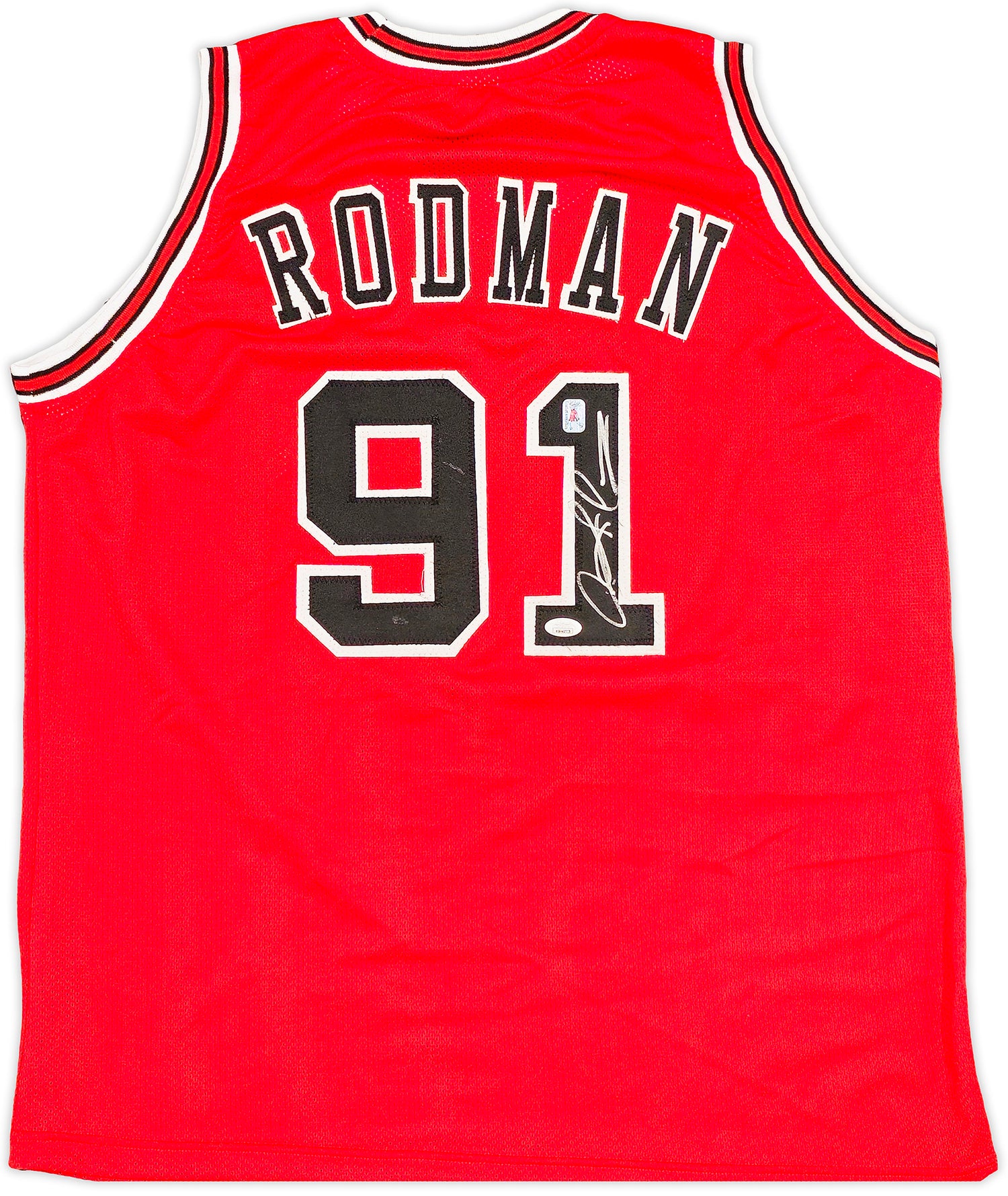 Chicago Bulls Dennis Rodman Autographed Red Jersey JSA Stock #237055