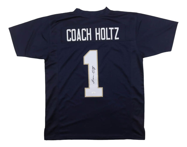 Coach Lou Holtz Notre Dame Signed Navy Blue Football Jersey JSA