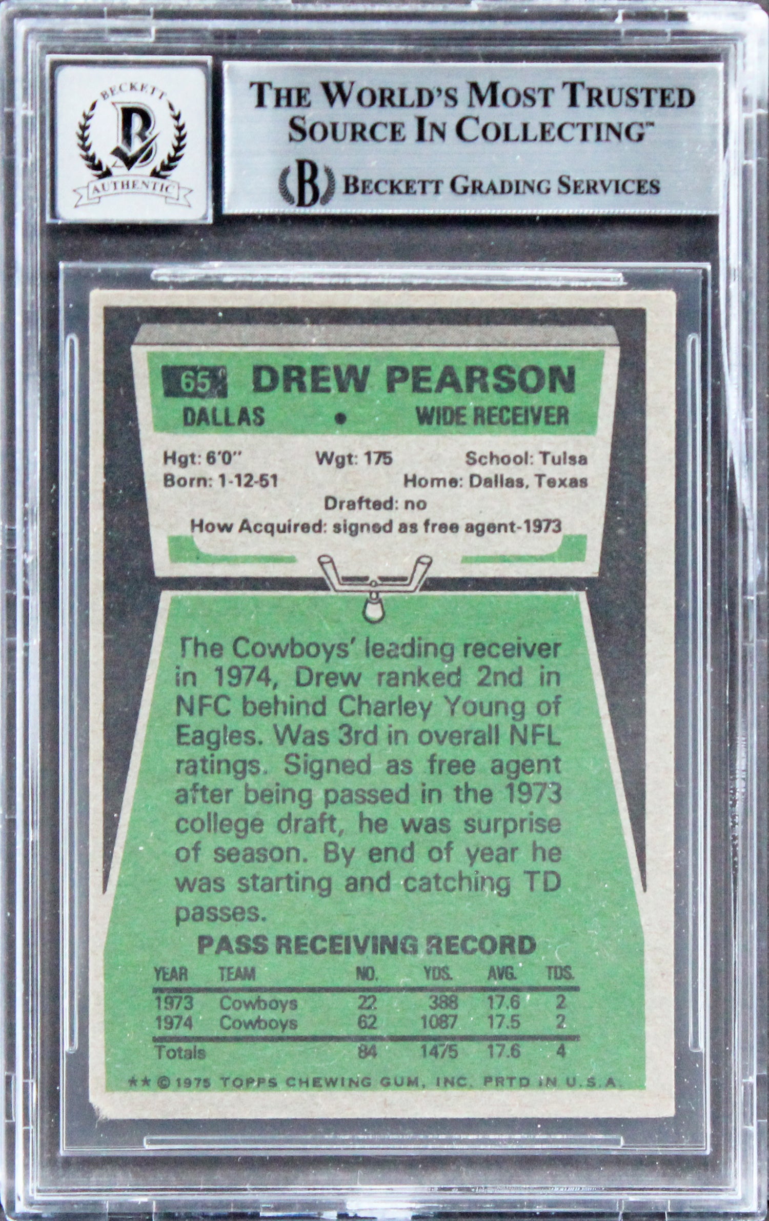 Cowboys Drew Pearson "HOF 21" Signed 1975 Topps #65 Card Auto 10! BAS Slabbed