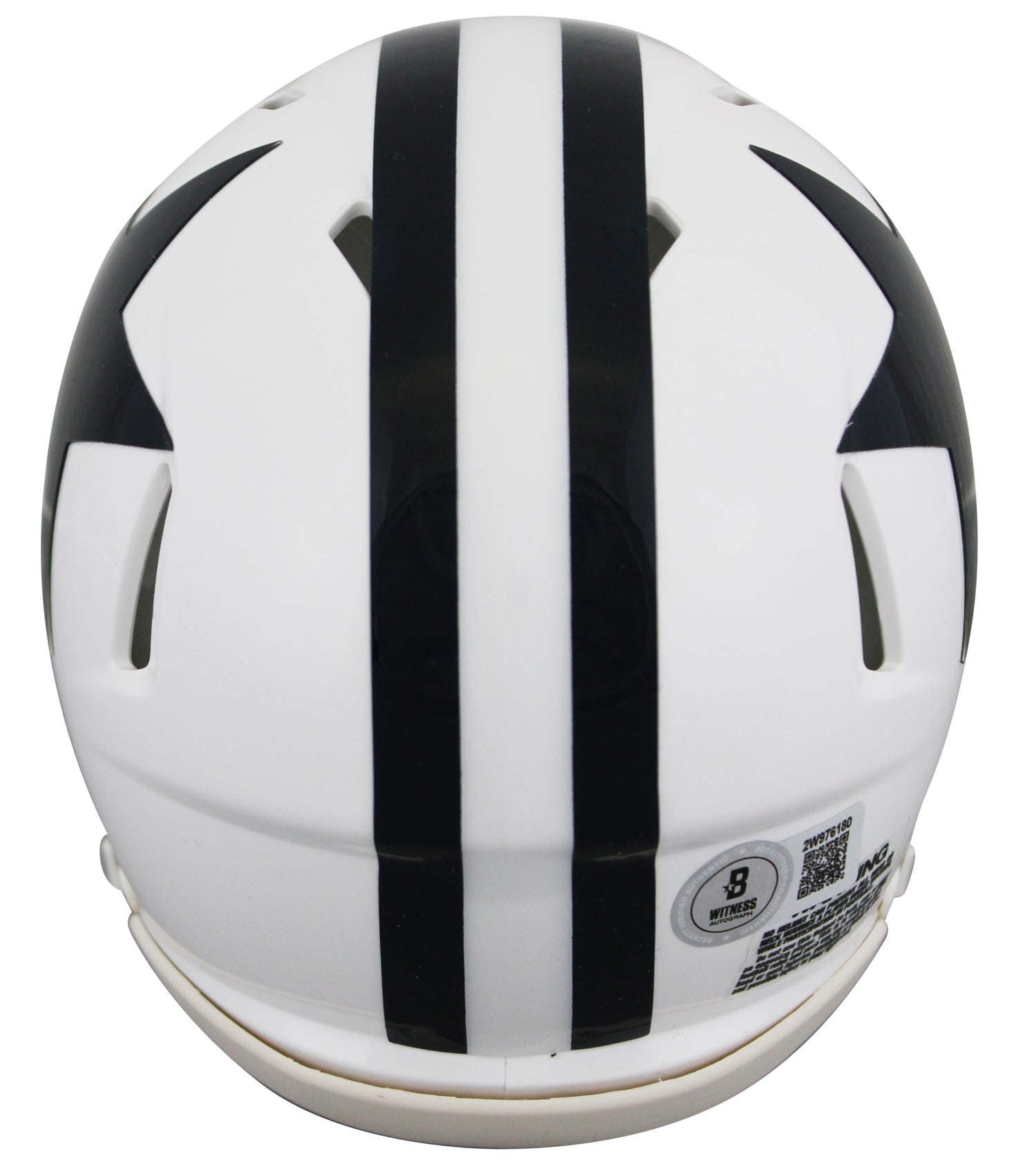 Celebrate the legacy of an NFL icon with this Jimmy Johnson Autographed 1960-63 Throwback Speed Mini Helmet, complete with a UV Mirrored Back Acrylic Display Case—a striking tribute to one of the most respected coaches in Dallas Cowboys history. Whether you're a lifelong Cowboys fan or a serious collector of signed sports memorabilia, this officially authenticated piece is sure to elevate your collection. Relive the golden era of the Dallas Cowboys with this classic mini helmet design, inspired by the team's look from 1960-63. Jimmy Johnson, a Hall of Fame coach who led the Cowboys to back-to-back Super Bowl victories in the early '90s, has personally signed this collectible. His autograph, bold and unmistakable, turns this mini helmet into a true collector's treasure. This item has been authenticated through the Beckett Authentication Services (BAS) Witnessed Protection Program, meaning a BAS representative was present at the time of signing. A Beckett authentication sticker, featuring a scannable QR code, is affixed directly to the item for instant certificate-free verification.