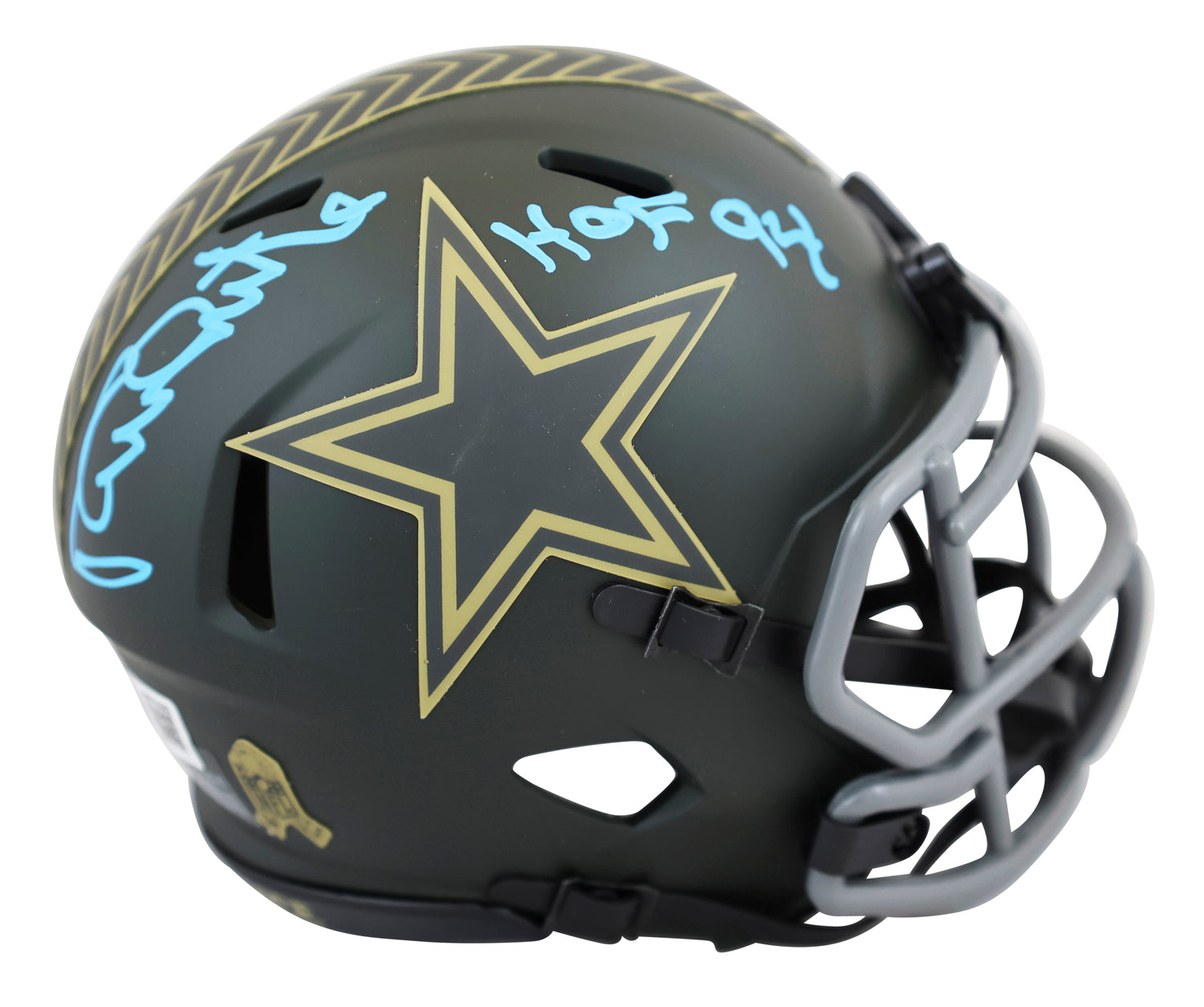 This Autographed Dallas Cowboys Alternate 2025 Salute To Service IV Speed Mini Helmet has been personally signed by Pro Football Hall of Famer Randy White and includes the special inscription "HOF 94". A must-have piece for any Cowboys fan or serious football memorabilia collector, this helmet pays tribute to both a legendary career and the NFL's commitment to honoring military service through its Salute to Service design. Authenticated by Beckett Authentication Services (BAS), this mini helmet combines visual appeal with unquestionable legitimacy—making it a standout in any collection.