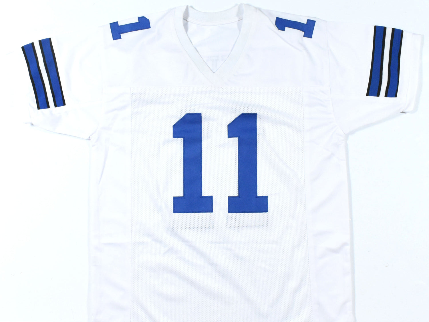 Add a legendary piece to your Dallas Cowboys memorabilia collection with this hand-signed Danny White custom jersey. A key figure in the Cowboys' history, Danny White led the team through much of the 1980s, earning Pro Bowl honors and cementing his legacy in franchise lore. This signed jersey is perfect for any fan looking to honor one of Dallas’ most iconic quarterbacks. Please note: This is not an official NFL jersey. It has no team logos, branding, or NFL emblems—making it ideal for collectors focused on autographs and display value.