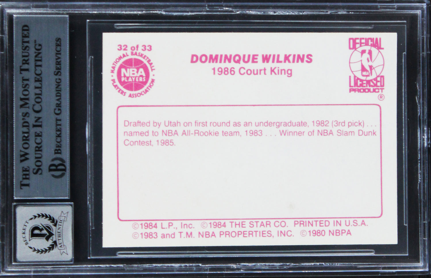 Dominique Wilkins Signed 1986 Star Court Kings #32 UER Card Auto 10! BAS Slabbed