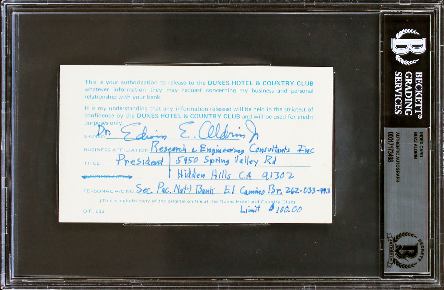 Edwin "Buzz" Aldrin Apollo 11 Authentic Signed 3.25 x 5.5 Index Card BAS Slabbed