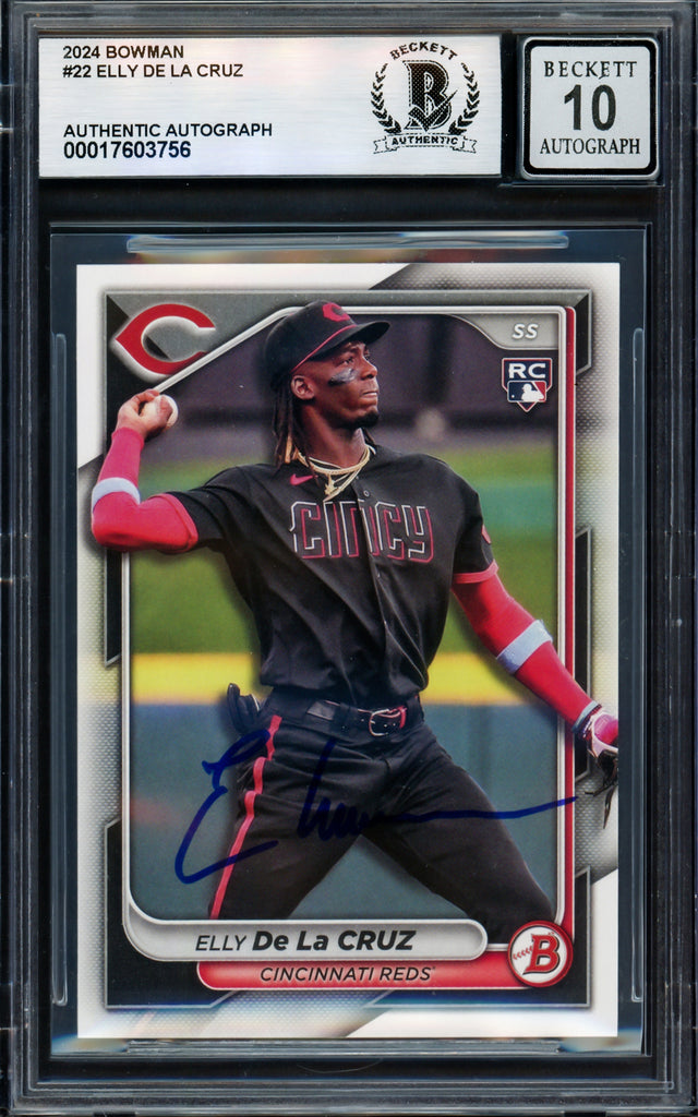 Elly De La Cruz Autographed 2024 Bowman Rookie Card #22 Cincinnati Reds Auto Grade Gem Mint 10 Beckett BAS Stock #238902