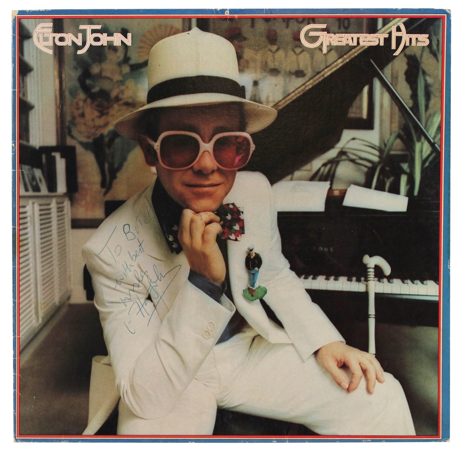 Elton John "Best Wishes" Authentic Signed Greatest Hits Album Cover BAS #AD85549