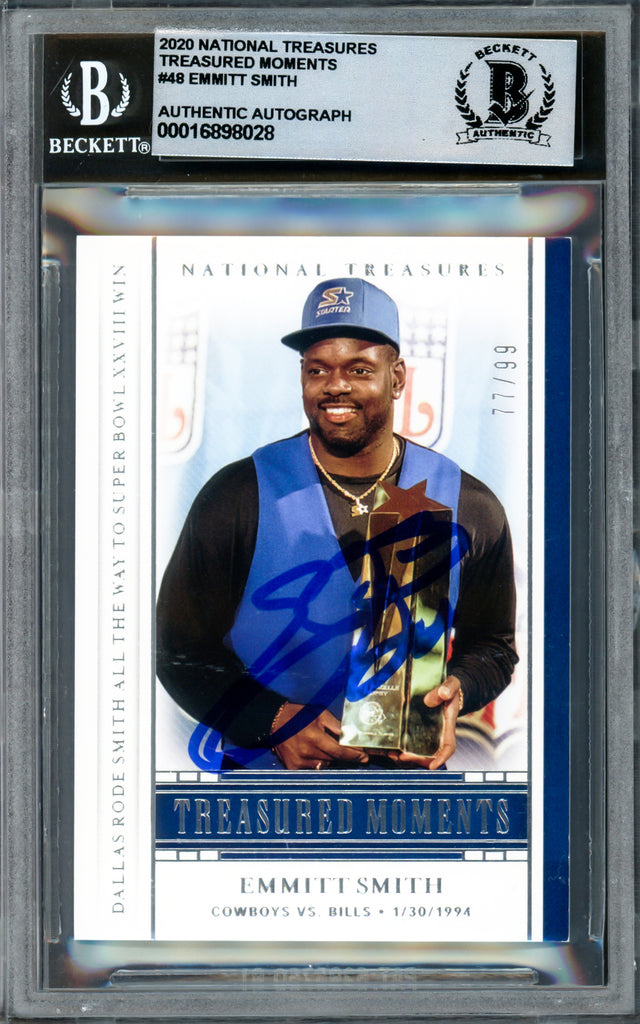 Emmitt Smith Autographed 2020 National Treasures Treasured Moments Card #48 Dallas Cowboys Auto Grade Gem Mint 10 #77/99 Beckett BAS #16898028