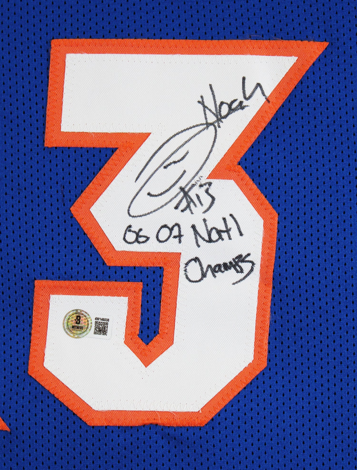 Celebrate one of the greatest eras in Florida Gators basketball with this Autographed Blue Pro Style Jersey signed by Joakim Noah, inscribed with "2006 & 2007 National Champs". A centerpiece for any serious sports memorabilia collection, this signed jersey commemorates the Gators’ historic back-to-back NCAA Championship victories—a rare feat in college basketball history. Joakim Noah, a dominant force on those championship squads, has personally signed each jersey, making it a standout collectible for Gators fans and NCAA basketball enthusiasts alike.