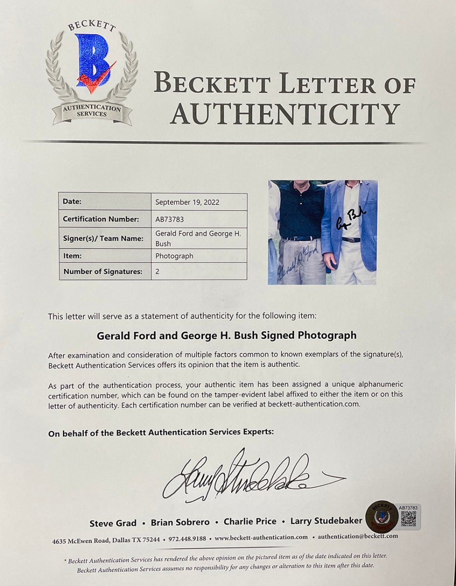 - Authenticity Guaranteed: Hand-signed by Gerald Ford and George H.W. Bush, authenticated by Beckett Authentication Services (BAS).