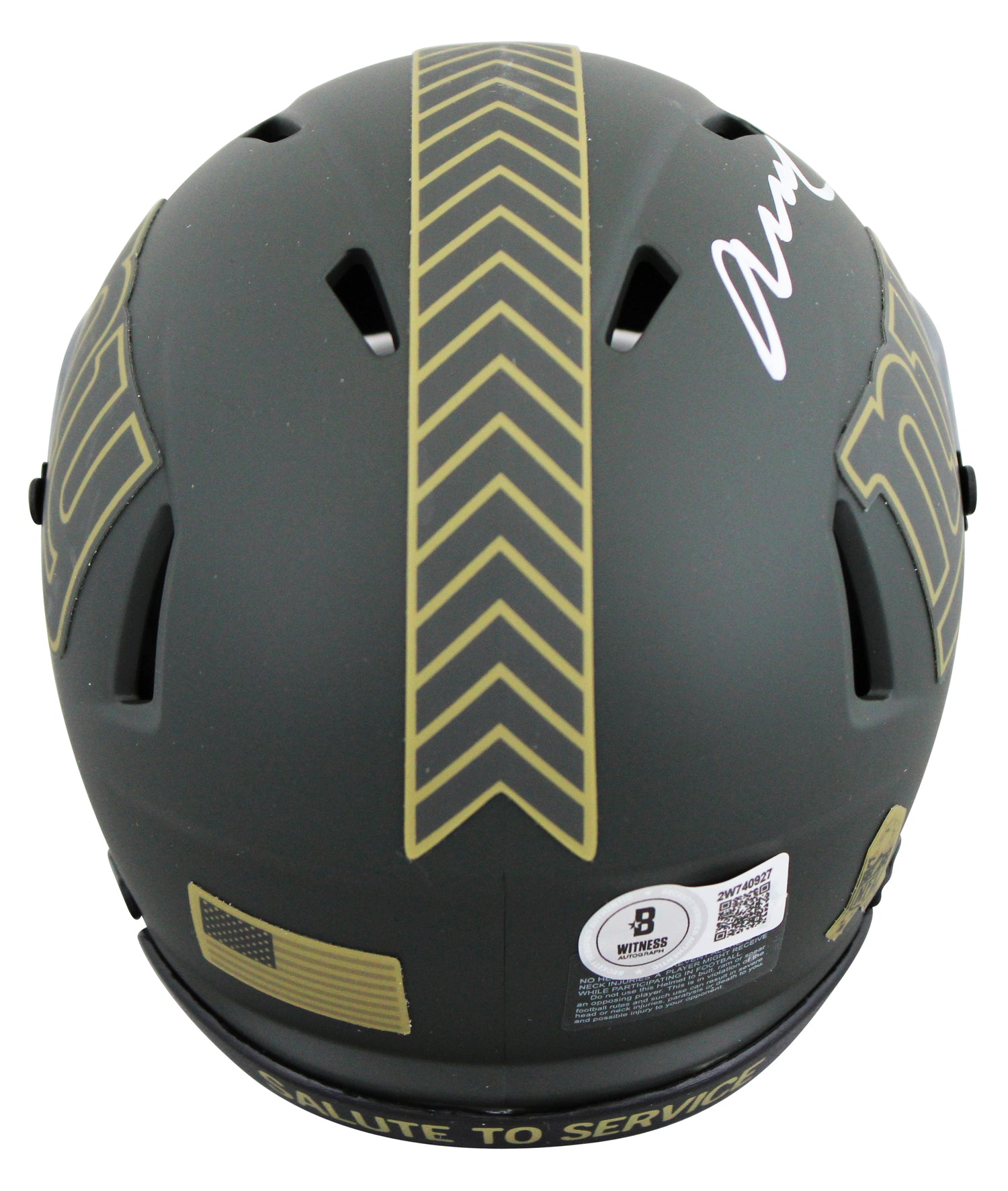 Capture a must-have piece of NFL memorabilia with this Abdul Carter Autographed Alternate 2025 Salute to Service IV Speed Mini Helmet, personally signed by the rising star linebacker of the New York Giants. Designed in tribute to the NFL’s Salute to Service campaign, this alternate mini helmet pays homage to the brave men and women of the U.S. military while celebrating the promising career of Abdul Carter—a powerhouse defender known for his intensity and game-changing plays. Each helmet is part of the Beckett Witnessed Protection Program, ensuring an extra layer of trust and value to your collection. This item is not only 100% authentic but also verifiable via a scannable QR code on the affixed Beckett Authentication Services (BAS) sticker. Beckett representatives were physically present during the signing, making this a truly witnessed collectible that stands above standard authenticated items. Whether you're a passionate New York Giants fan, an NFL memorabilia collector, or seeking the perfect sports-inspired gift, this signed mini helmet is an exceptional addition to any collection.