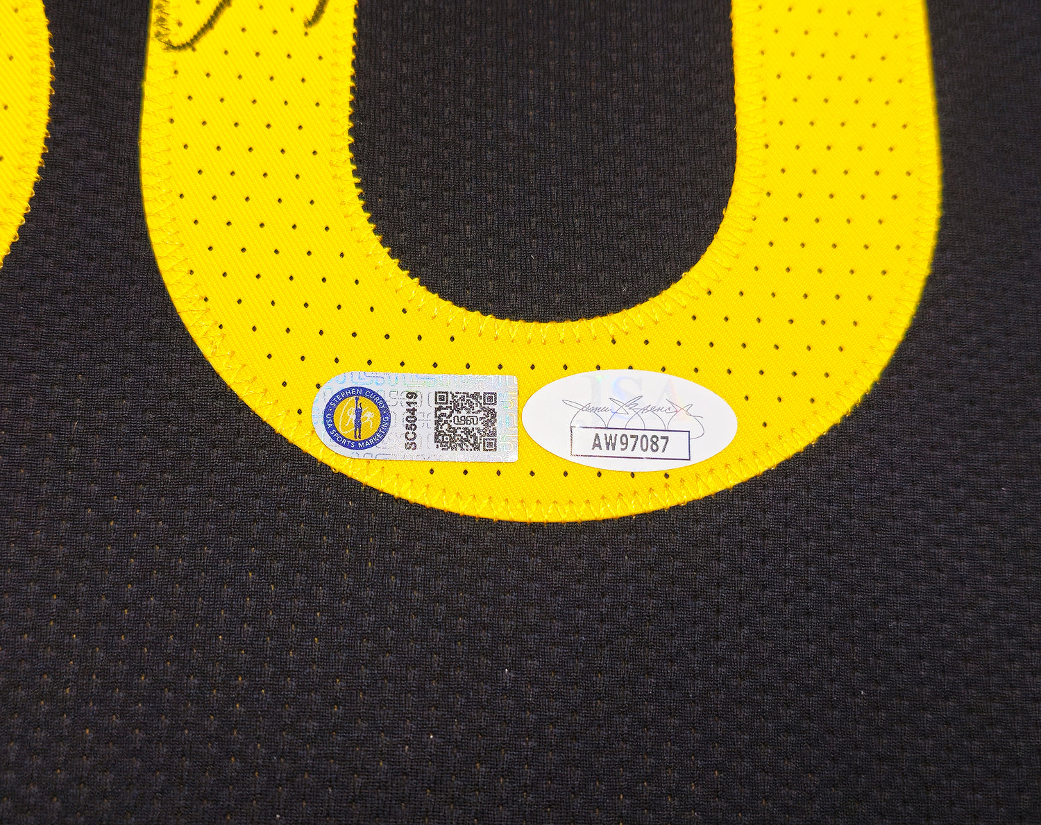 Own a piece of basketball history with this Black Nike Golden State Warriors City Edition Jersey, personally hand-signed by Stephen Curry. This Size 48+2 jersey is a must-have for any Warriors fan or serious memorabilia collector.