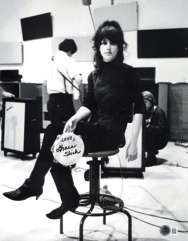 This stunning 11x14 photo hand-signed by Grace Slick is a must-have for any rock music collector or pop culture enthusiast. As the influential lead singer of Jefferson Airplane—one of the most iconic bands of the psychedelic rock era—Grace Slick helped define the sound of the 1960s counterculture movement. This particular photo is made even more special by the personal touch of the inscription: "Love."