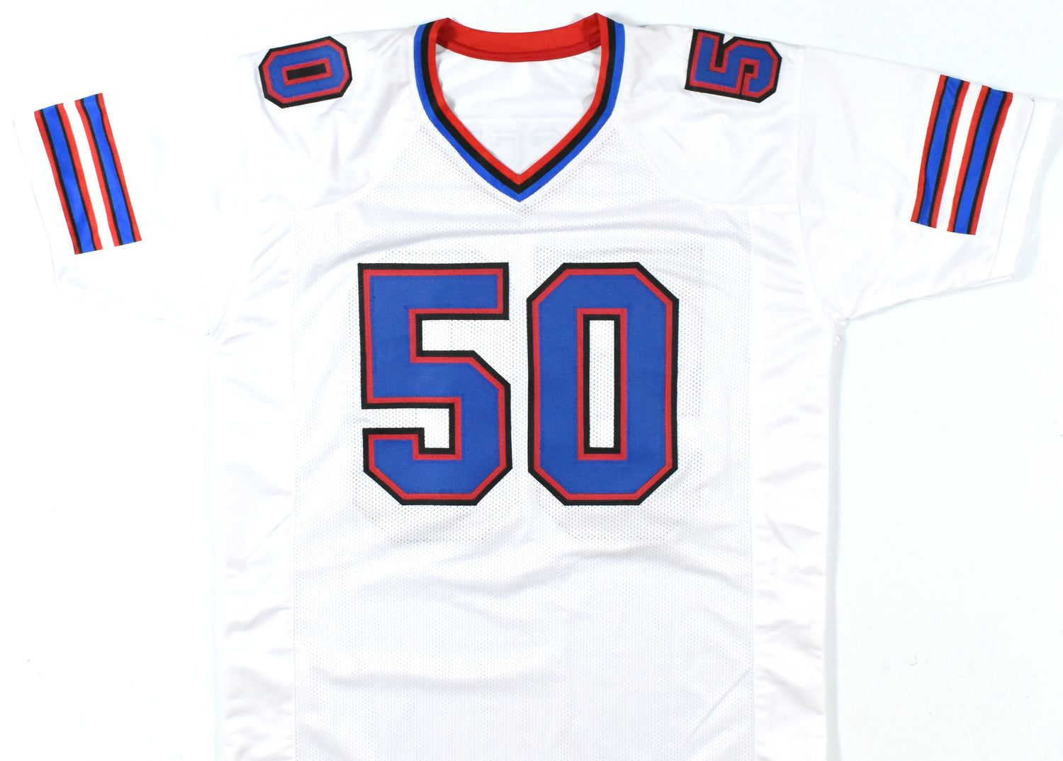 Own a Piece of Buffalo Bills History with this Signed Greg Rousseau Custom Jersey! Whether you're a die-hard Bills Mafia supporter or a passionate NFL memorabilia collector, this authentic-style jersey signed by standout defensive end Greg Rousseau is a must-have addition to your collection. While not an official NFL jersey, this custom-made piece offers the feel of a pro uniform with stitched names and numbers, making it ideal for display and showcasing your allegiance to the Buffalo Bills.