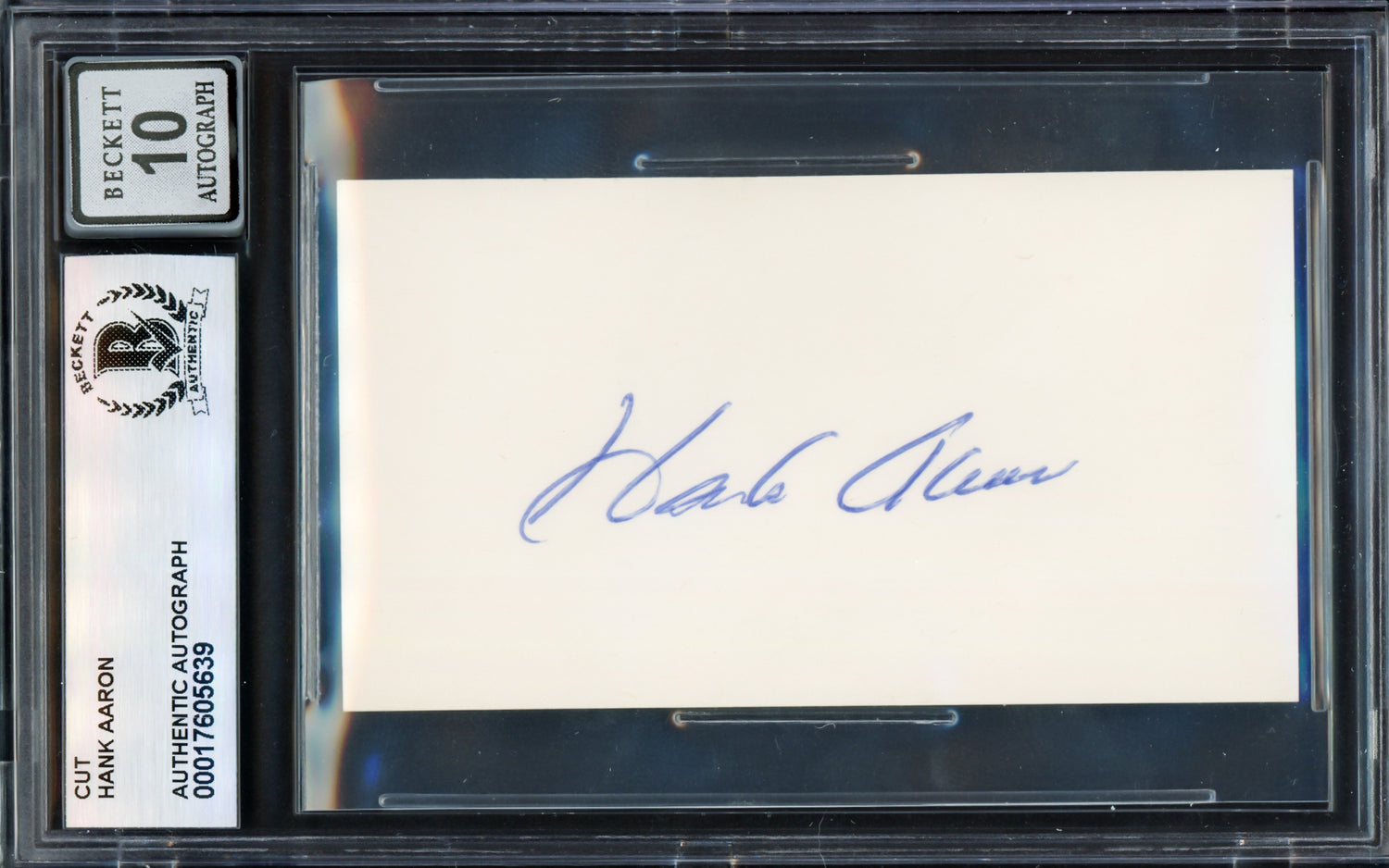 Hank Aaron Autographed 2x3.5 Cut Signature Atlanta Braves Auto Grade Gem Mint 10 Beckett BAS #17605639
