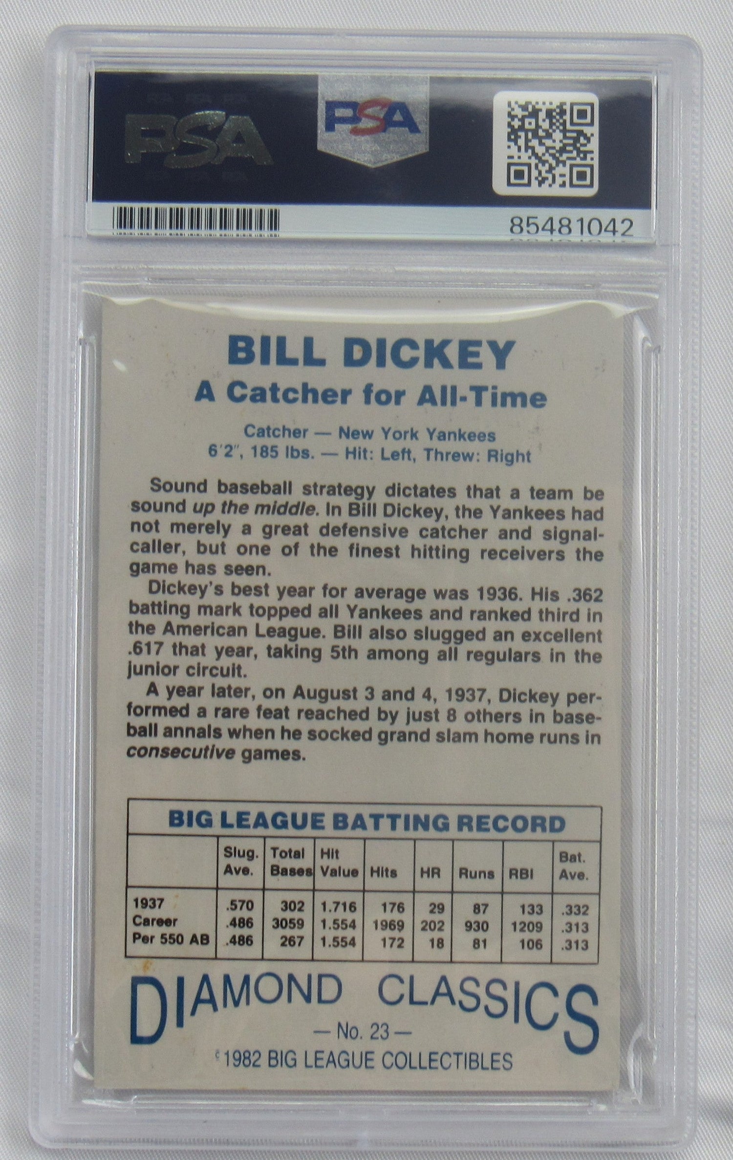 - Authentic Bill Dickey autograph on the 1982 Diamond Classic #23 trading card