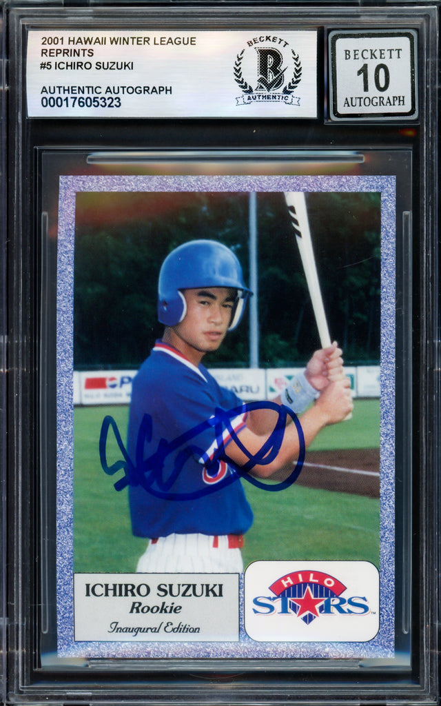 Ichiro Suzuki Autographed 2001 1993 Hilo Stars Reproduction Card #5 Hilo Stars Auto Grade Gem Mint 10 (Signed in Kanji) Beckett BAS #17605323