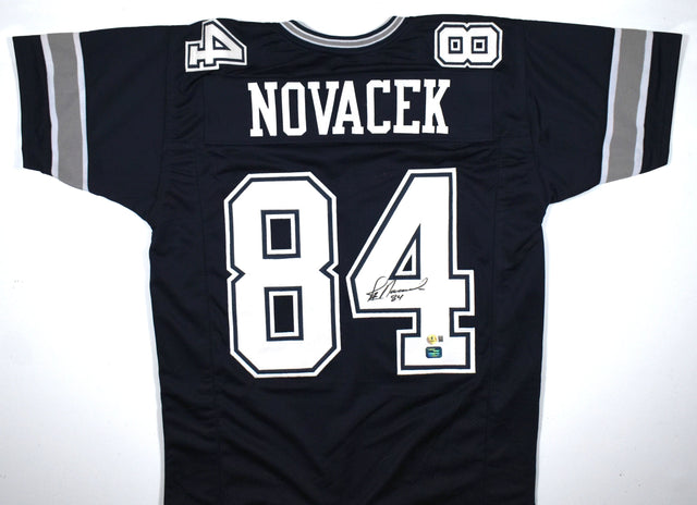 Enhance your memorabilia collection with this Jay Novacek autographed jersey—a must-have for devoted Dallas Cowboys fans and NFL enthusiasts. Order today and own a lasting piece of football history!