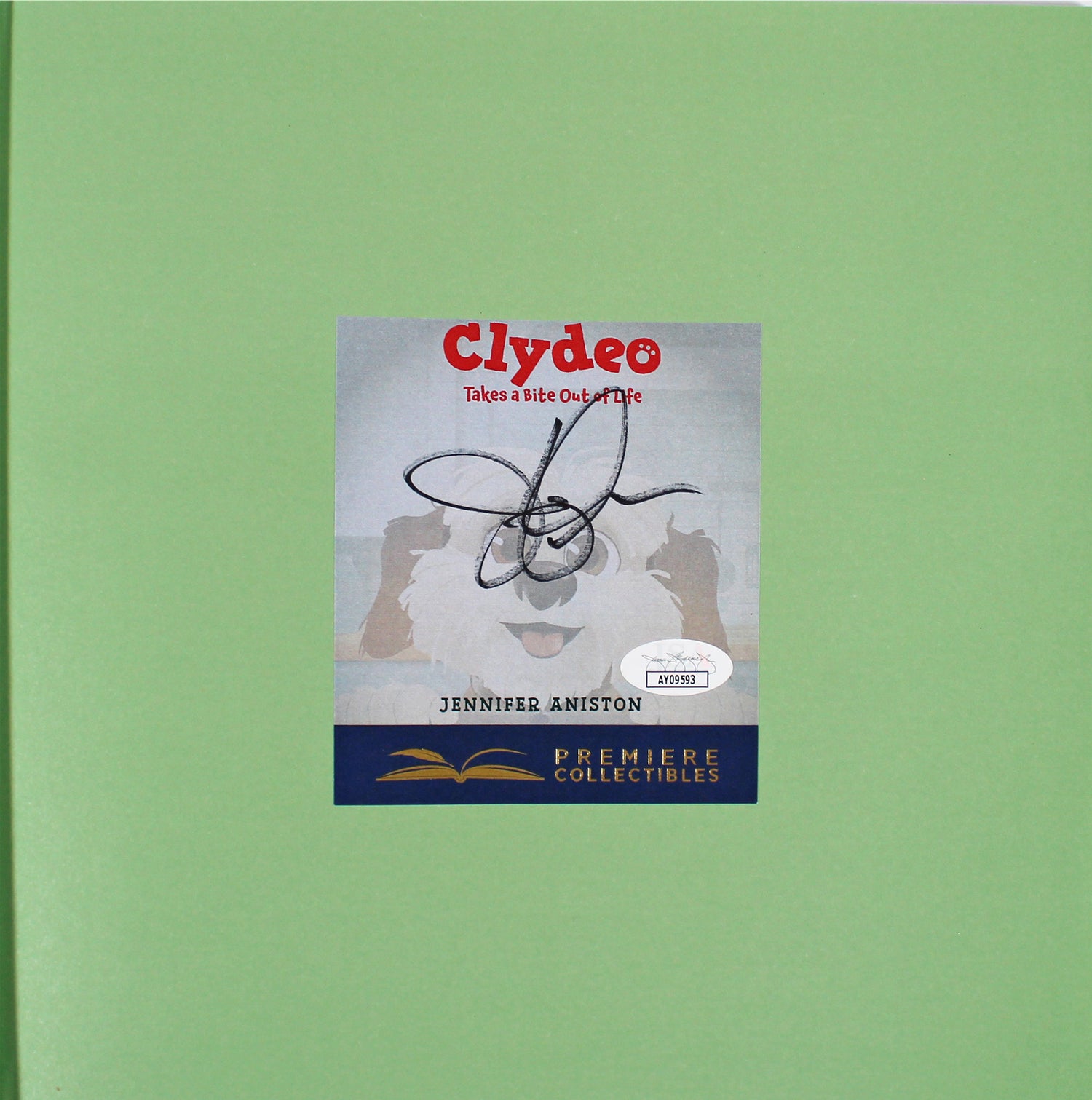 - Exclusive Collector’s Item – Celebrate Jennifer Aniston’s contributions to entertainment with this signed edition of "Clydeo Takes A Bite Out of Life".
