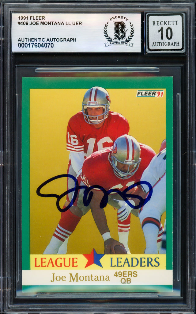 Joe Montana Autographed 1991 Fleer Card #408 San Francisco 49ers Auto Grade Gem Mint 10 Beckett BAS #17604070