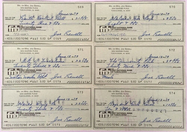Own a rare piece of baseball history with this lot of 6 Joe Sewell signed checks, a must-have for collectors and fans of the legendary Hall of Fame infielder. Guaranteed to pass any third-party authentication, these autographed checks offer an authentic connection to one of the game's greatest contact hitters.