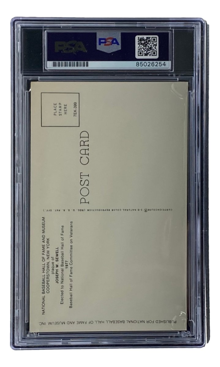 Own a piece of baseball history with this Joe Sewell signed 4x6 Hall of Fame plaque card, a must-have for dedicated collectors and fans of the game. Joe Sewell, a legendary shortstop and third baseman for the Cleveland Indians, was known for his incredible bat control and resilience at the plate. This exclusive collectible has been hand-signed by Sewell and comes fully authenticated and encapsulated by PSA/DNA, ensuring its authenticity and long-term preservation.