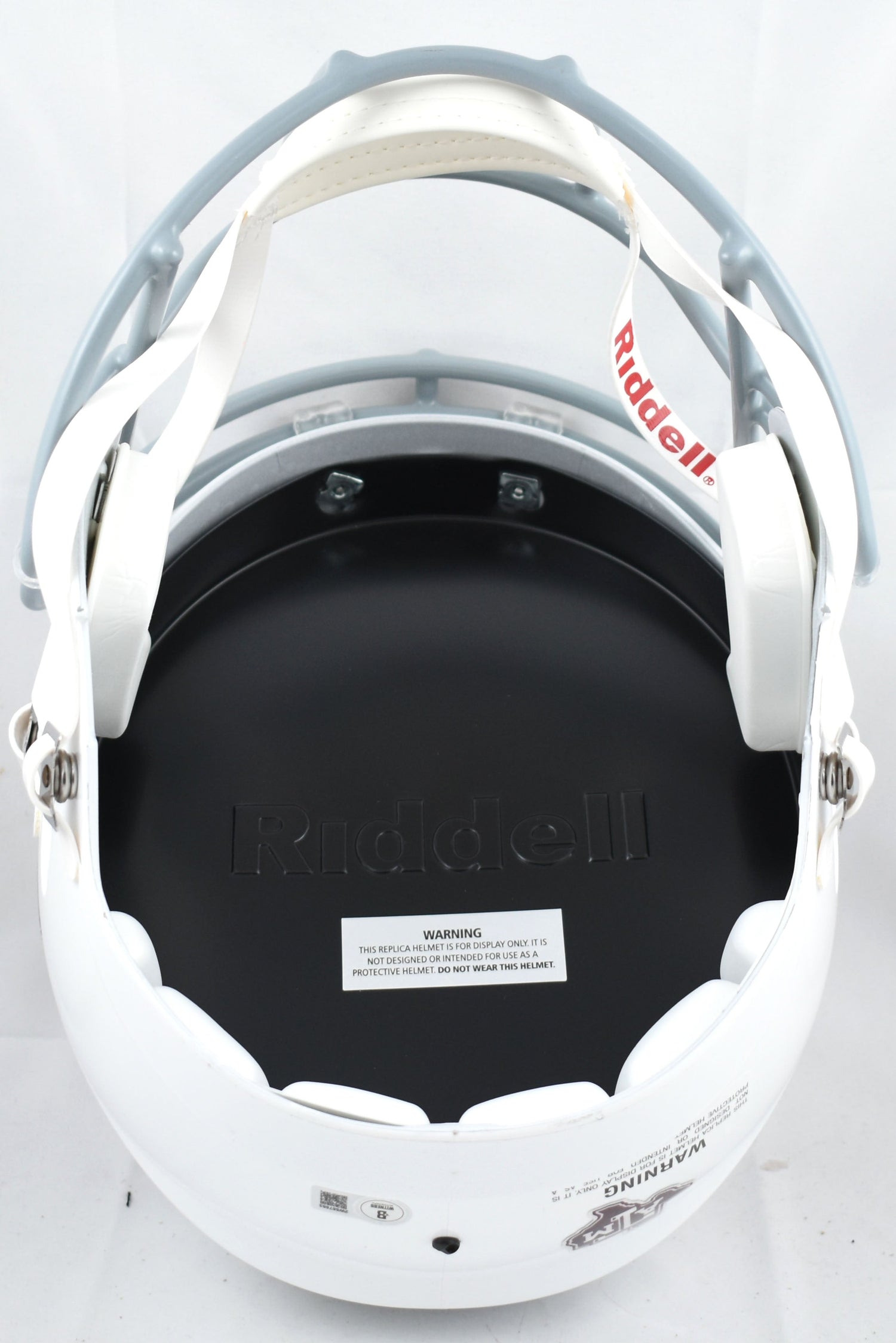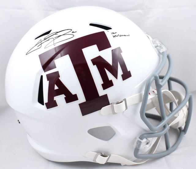 Own a piece of college football history with this Johnny Manziel Texas A&M Aggies Autographed Riddell Full-Size Speed Replica Helmet. Signed by the 2012 Heisman Trophy winner, this collectible features Manziel’s signature along with the "12 Heisman" inscription—a must-have for Texas A&M fans and sports memorabilia collectors.