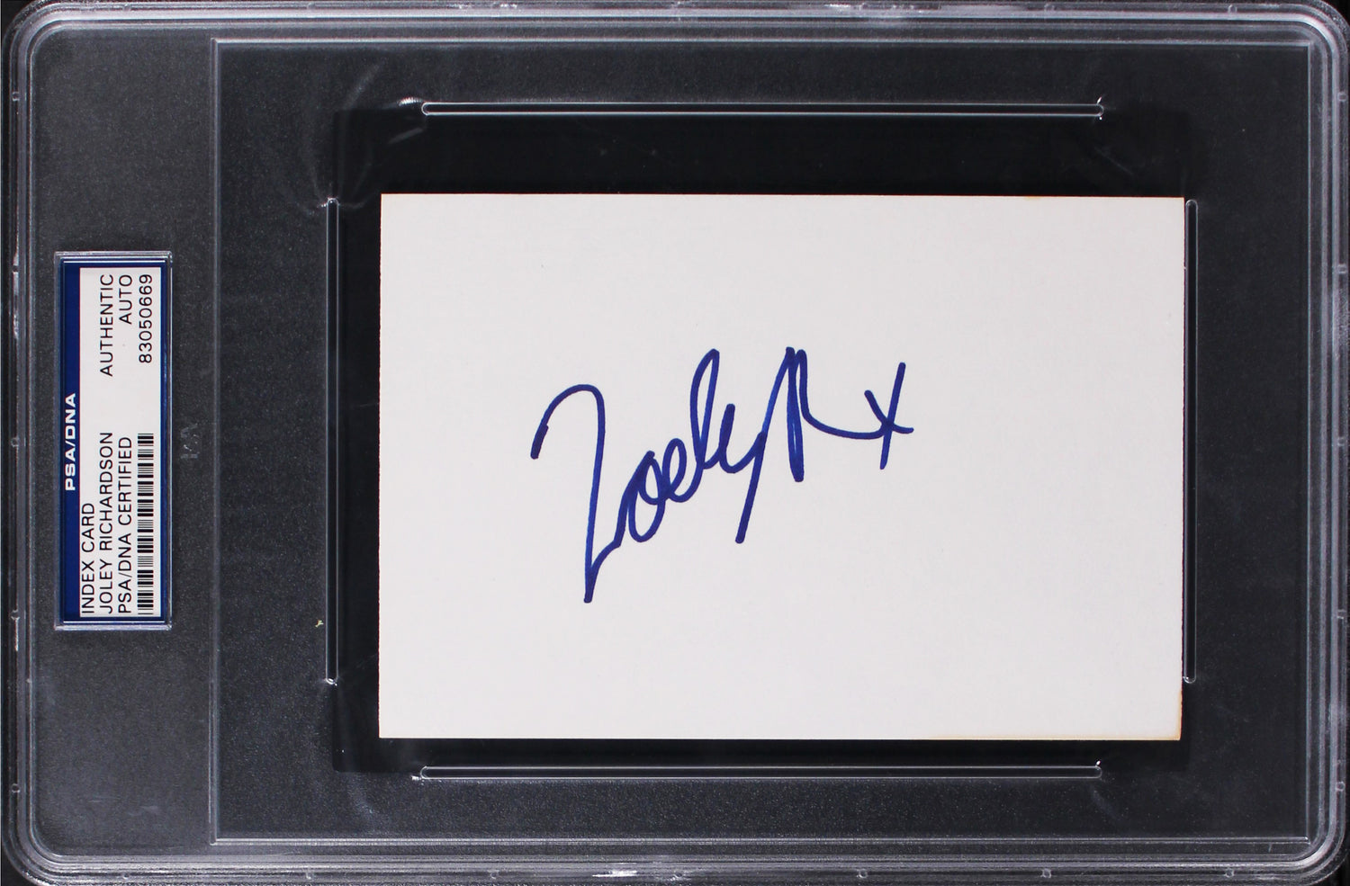 Own a piece of television history with this Joley Richardson Autographed 4x6 Index Card, personally signed by the acclaimed actress from Nip/Tuck. A must-have for fans of the hit medical drama, this rare collectible is 100% authentic and has been professionally slabbed and authenticated by PSA/DNA.