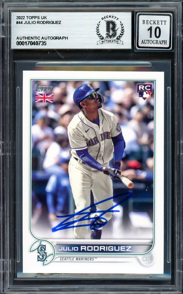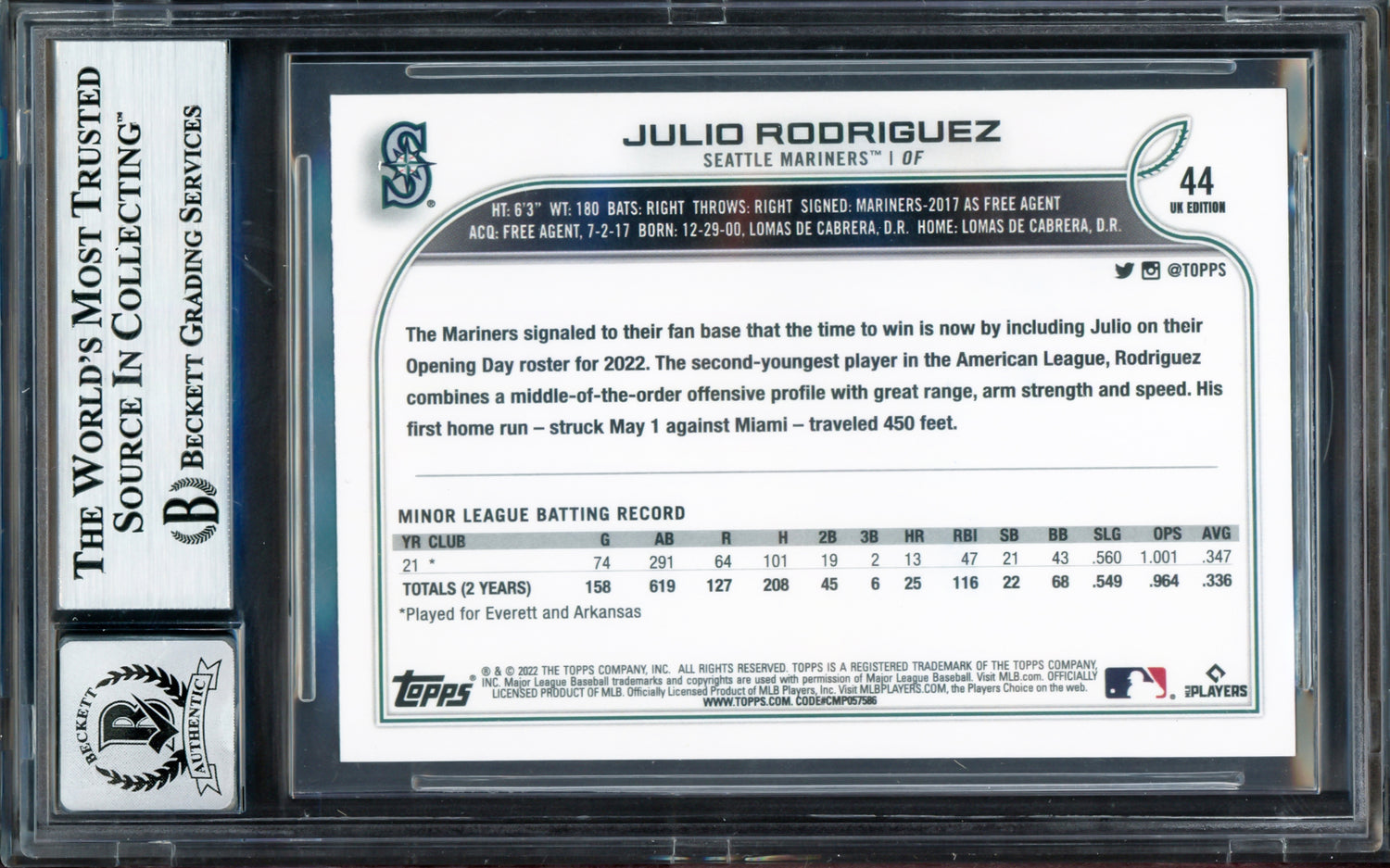 Julio Rodriguez Autographed 2022 Topps UK Edition Rookie Card #44 Seattle Mariners Auto Grade Gem Mint 10 Beckett BAS #17040735