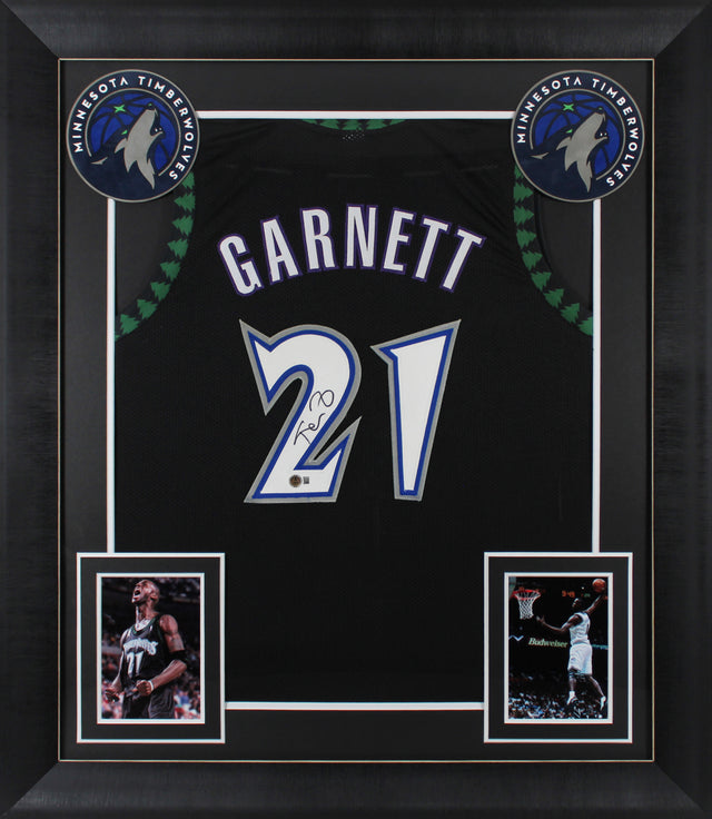 Celebrate the legacy of one of the NBA’s most dominant power forwards with this Kevin Garnett Autographed Black Pro Style Framed Jersey, personally signed during an exclusive signing event. Featuring Garnett’s iconic number and stitched in Timberwolves-inspired styling, this custom-framed collectible pays tribute to the Minnesota Timberwolves legend and 15-time NBA All-Star. Professionally framed and authenticated by Beckett Authentication Services, this jersey is a centerpiece for fans of the Timberwolves, Hall of Fame collectors, and KG supporters alike. Known for his intensity, championship mentality, and All-NBA legacy, Kevin Garnett helped redefine the power forward position—and now you can own a piece of that history. This item is authenticated under the BAS Witnessed Protection Program, meaning a Beckett representative directly observed the signature process, ensuring 100% authenticity. While minor variations in signature placement and strength may occur, each jersey is hand signed and uniquely yours. Professionally framed, this statement piece brings the heart of the court to your wall.