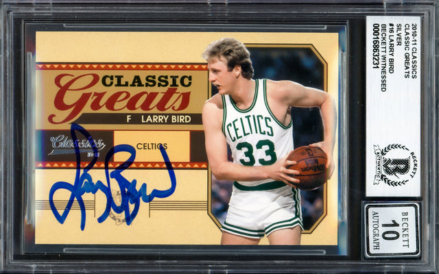 Larry Bird Autographed 2010-11 Classics Greats Silver Card #16 Boston Celtics Auto Grade Gem Mint 10 #085/250 Beckett BAS Witness #16863231 is backordered and will ship as soon as it is back in stock.