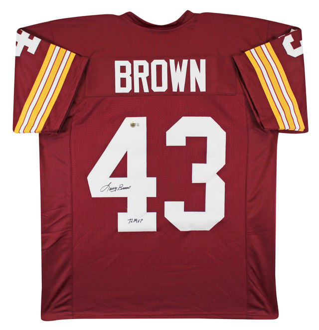 Own a piece of Washington Commanders history with this autographed maroon Pro Style jersey, personally signed by legendary Larry Brown. A standout running back and 1972 NFL MVP, Brown played a pivotal role in Washington football history, making this signed jersey a must-have for collectors and fans alike.