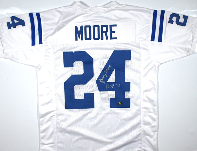 Lenny Moore Autographed White Pro Style Jersey w/ HOF - Prova *Silver