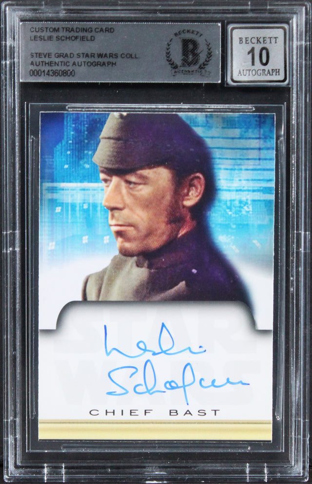 Leslie Schofield Star Wars Signed Custom Trading Card Auto 10! BAS Slabbed is backordered and will ship as soon as it is back in stock.