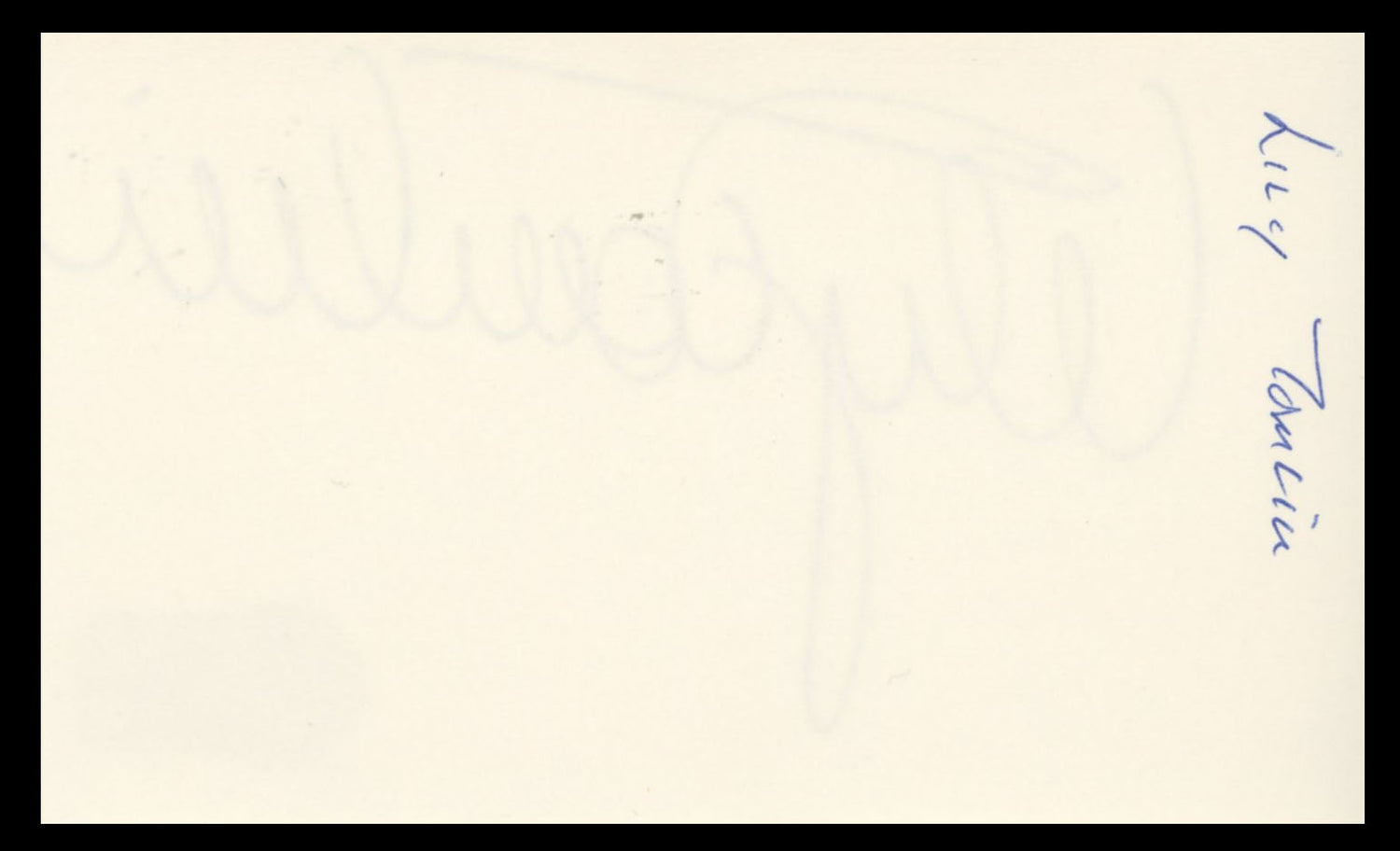 This autographed 3x5 index card has been personally signed by the iconic comedian and actress Lily Tomlin, best known for her award-winning roles in classics like Grace and Frankie, Nashville, and the groundbreaking sketch comedy show Laugh-In. A must-have for fans of pop culture and comedy history, this collectible captures the legacy of one of entertainment’s most beloved performers.
