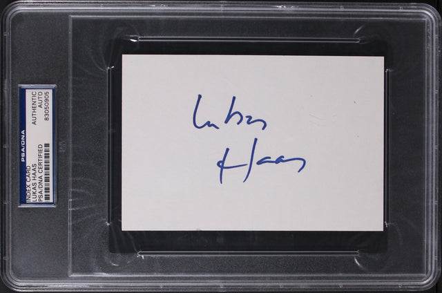 Own a piece of pop culture history with this Autographed 4x6 Index Card personally signed by Lukas Haas from Witness. This rare collectible is a must-have for fans of the acclaimed actor and film enthusiasts alike. Authenticated by PSA/DNA and securely slabbed, ensuring its 100% authenticity.