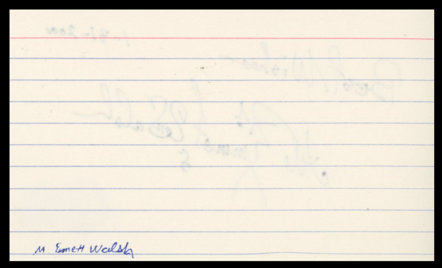 Own a unique piece of Hollywood history with this Autographed 3x5 Index Card personally signed by M. Emmet Walsh, the acclaimed character actor best known for his roles in cult classics and critically acclaimed films like Big Little Man. This rare collectible includes the personalized inscription "Best Wishes 1-31-2000", making it a special keepsake for pop culture enthusiasts and autograph collectors alike. Authenticated by one of the industry's most trusted names, this signed item brings lasting value to any collection.