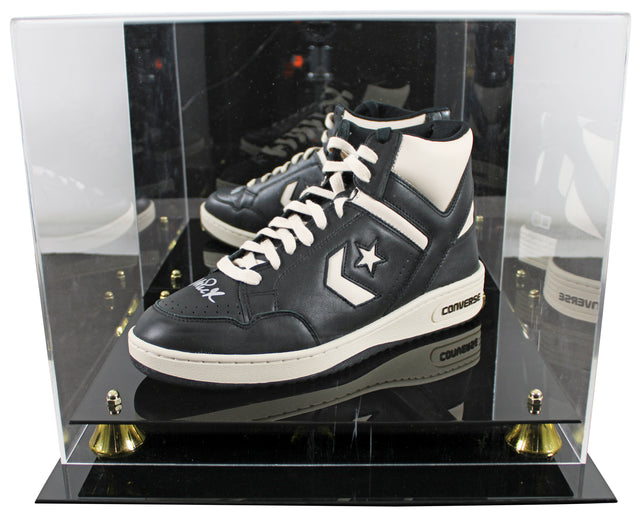 Own a piece of basketball history with this autographed Left Black & White Converse Weapon Shoe, personally signed by Magic Johnson of the Los Angeles Lakers. This iconic sneaker, a must-have for any serious collector, comes in a UV-mirrored back acrylic display case, perfect for showcasing this legendary artifact.