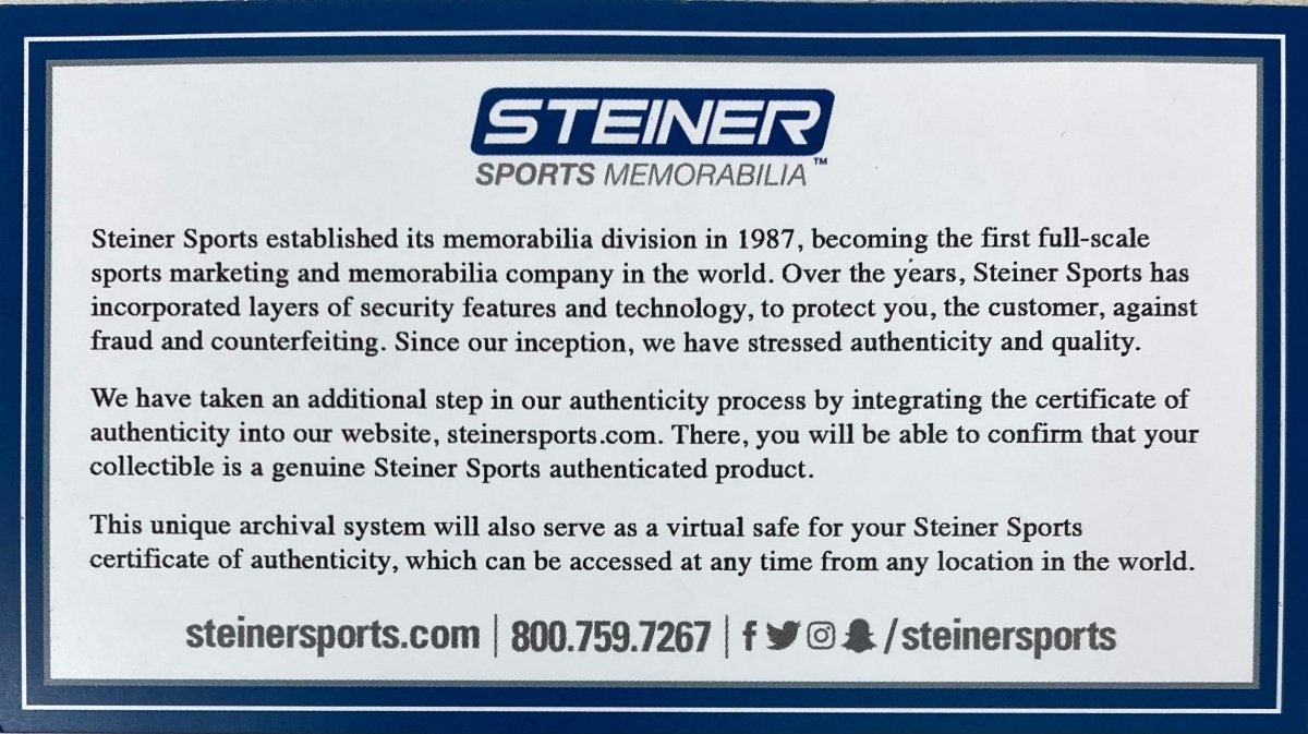 - Includes an official Steiner Sports hologram and certificate of authenticity for guaranteed legitimacy.