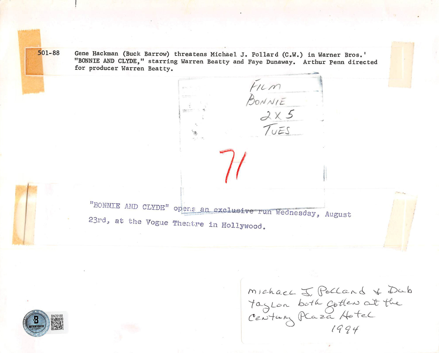 - Collector’s Dream – Featuring the authentic signatures of Michael J. Pollard (Academy Award-nominated actor) and Dub Taylor, both integral to the success of Bonnie and Clyde.